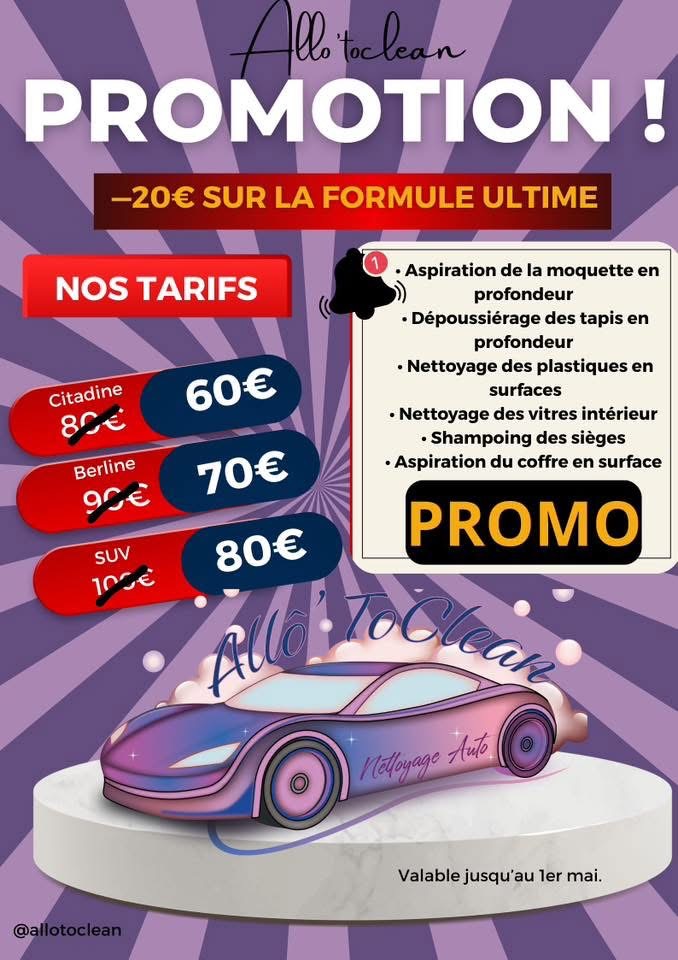 Confiez votre voiture à Allo To Clean pour un nettoyage intérieur et extérieur complet, directement à domicile.